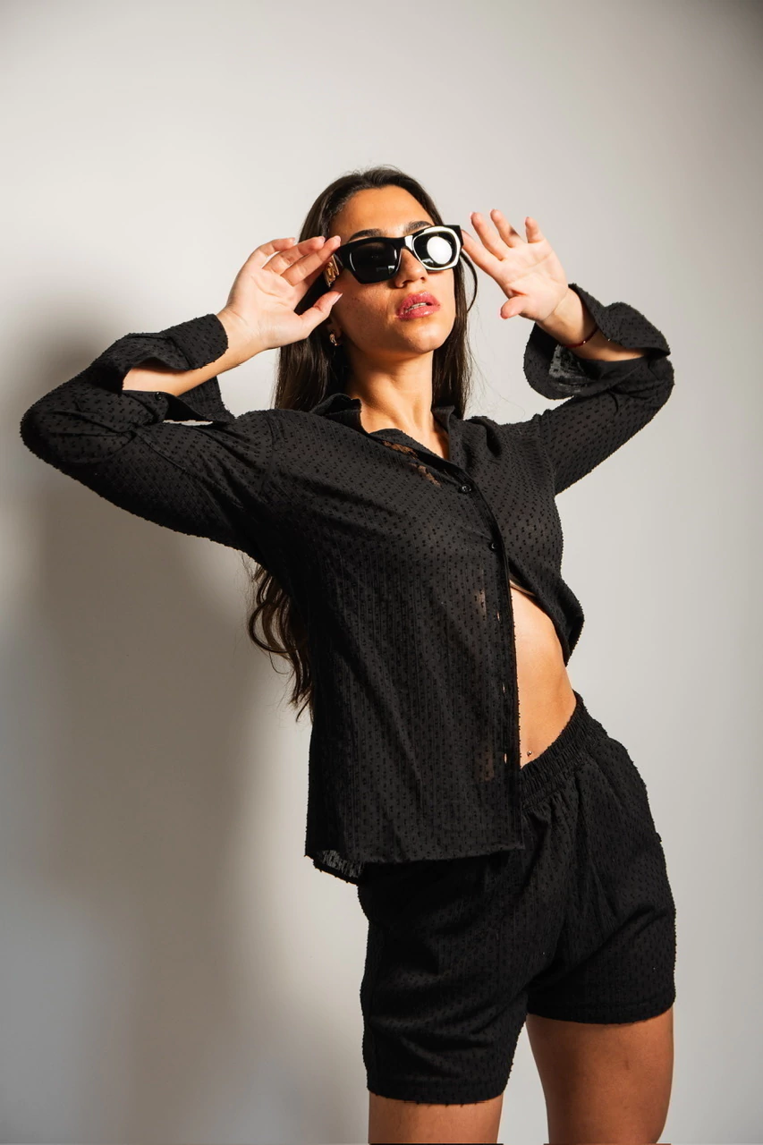 Descubrí el conjunto Donna plumeti negro, una combinación elegante y fresca que no puede faltar en tu guardarropa. La camisa y el short, confeccionados en un tejido plumeti suave y ligero, ofrecen comodidad y estilo para cualquier ocasión. Su diseño sofisticado en negro realza tu figura y aporta un toque femenino y moderno. Ideal para lucir impecable con un look versátil y lleno de personalidad. ¡Sentite única y radiante con este conjunto exclusivo!